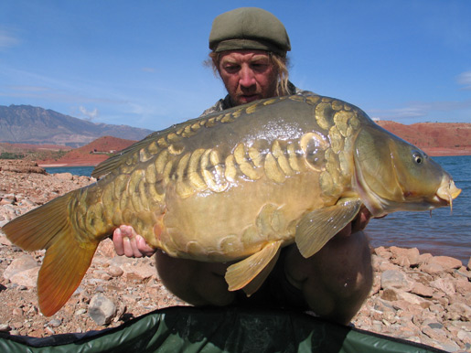 Spiegelkarper van 31,3 kg, December 2004 op Lac de Curton in Frankrijk.