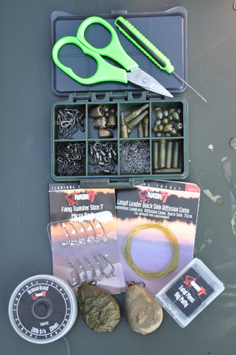 Nash armourbraid met een Fang Twister maatje 7. Ik heb al tal van rigs geprobeerd en er is maar 1 waar ik 100% vertrouwen in heb. (zie foto)