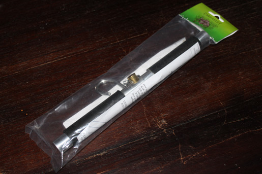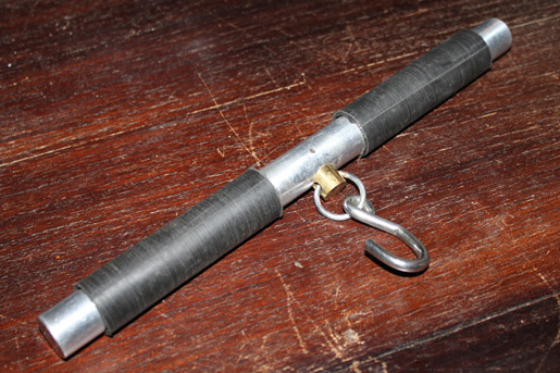 Deze weigh bar is ziet er uit als een standaard weegschaal hengsel. Hij is voorzien van twee rubberen handvatten. Dit is zeker lekker en bijna nodig als het erg koud is. Rubber geleid stukken minder dan ijzer, wat volgens de overlevingsspecialisten op de discovery channel tot 5x sneller afkoelt.