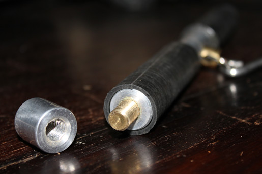 Tot nu lijkt alles standaard, maar er zit een leuk verstopt item in verwerkt. Je kan namelijk aan de zijkant een dopje er af draaien. Hieronder zit een standaard maat schroefdraad. Op dit schroefdraad kan je bijvoorbeeld een stormpaal monteren. Zo kan je met 1 punt in de grond vrij eenvoudig en zeer stabiel een karper wegen. Niet trillen, stuiteren van de naald van de weegschaal. Maar doordat je 1 gedeelte in de grond steekt of iemand deze tegen houdt kan je de vis en de klok stil houden.