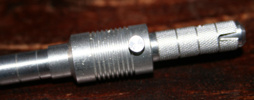 Dit doe je door de lus van de hair over het daarvoor bestemde steuntje te schuiven. Nu heeft de RigMaster richels op tweederde van het apparaat zitten. Elke richel is 5 mm. Dus kan je eenvoudig rekenen vanaf de haakbocht. Het steuntje heeft 5 mm overlap ik wil graag 1 cm tussen mijn boilie en de haakbocht. Dus 5 richels is dus wat ik nodig heb voor een 20 mm boilie. Is mijn boilie 15 mm dan schuif ik de houder een richel terug naar vier. Je kan je bijna niet vergissen.