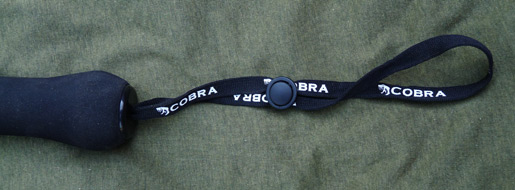 Voordeel: je hoeft de boilie niet helemaal boven in te stoppen. Super idee. Het werkt super, maar heeft ook wel een nadeel. Als je een niet volledig ronde boilie hebt, die past makkelijk in de snellader, maar die gaan niet door de pijp en blijft dus onderin vast zitten. Dit probleem heb je niet als je hem boven in de buis laadt, want dan zakt de boilie niet naar beneden. Iets om even handigheid in te krijgen en iets beter op te letten. Verder zit er aan onderaan de Cobra Distance Quickstick een makkelijk verstelbaar polsbandje. Dit is wel handig want als je hem per ongelijk los laat…… hoef je niet gelijk te zwemmen of met je vismaat naar het ziekenhuis ;-). Op de buis zit er nog een extra glad vlak waar je je duim tegen aan kan houden voor extra grip.