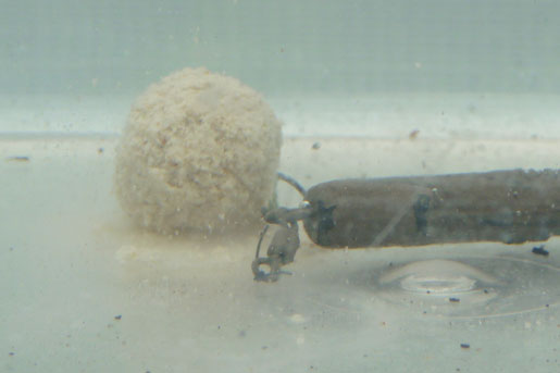Dit zorgt voor een kleine maar geconcentreerde voerplek. Verder kan je kleine brokjes door je grond voer mengen. Mocht je het bakje in de zon hebben gezet zonder deksel dan kan je het weer kneedbaar maken door je vingers nat te maken en weer door te kneden. Wanneer je het om een pop-up kneedt zal deze naar de bodem zakken.