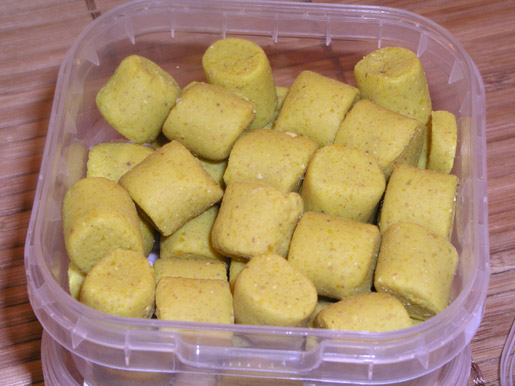 Ze hebben een goede geur en ook een goede smaak (ja, we proeven de boilies). Je kan ze niet zacht noemen, maar zijn wel te breken en in te drukken. De vorm van elke boilie is anders. Dit maakt het volgens mij goed aas. Maar dat zullen we laten weten na het weekend :)